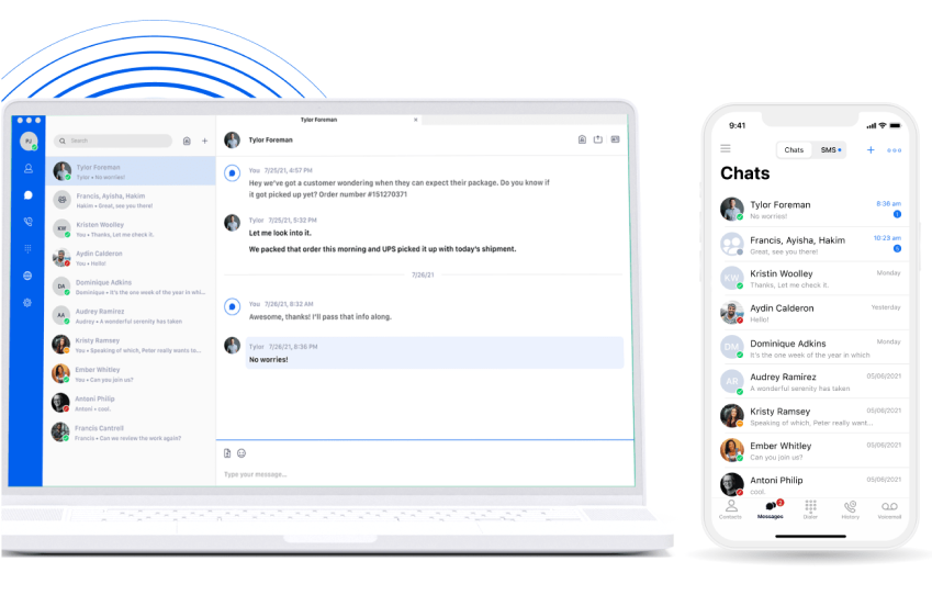 Nextiva provides an all-in-one simple Desktop and Mobile App for group conferencing, dialing/receiving phone calls, communicating via text message, and more.